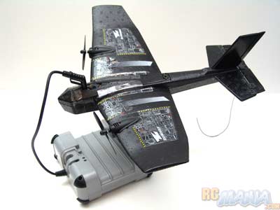 Most low-cost RC planes let you charge them directly from the controller. Not so with the Air Hogs Skywinder. The motors are so powerful and the battery so large that you need to use a dedicated charging station, included in the box. What's really a pain is that the charger requires eight (8) D batteries; expensive and very, very heavy to carry around. On the flip side, what's nice is that the charging station has a flap that pops up for mounding the plane, and it doubles as a simulation platform to practice the controls. When you're not charging the plane, you can actually turn it on and "fly" it in place to become familiar with how the buttons and joystick cause the plane to respond.