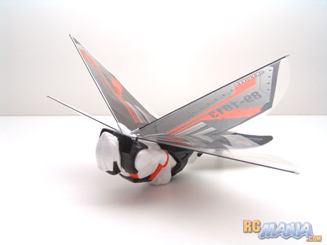 There's a V-Wing Avenger that looks like a bug, then there's this one which is supposed to be a skydiving guy with a flight suit. Both of these ornithopters (machines that fly like birds) just look like bugs to me, just like the Wow Wee Dragonfly I tested some time ago. The biggest difference is that this one is much smaller, about 10 1/2" wide and under 8" long. It also uses a rudder instead of a sideways-facing propeller for steering, and it has an airplane-like tail.