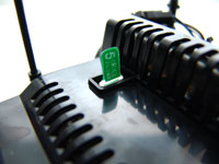 The term "batteries not included" doesn't apply here -- this car comes with a 9.6V NiCd battery and a small charger, and even a 9V battery for the transmitter! The charger is interesting -- it doesn't have a cord. You plug it into your outlet, and then plug the battery directly into it. Simple enough! Charging takes only 4 hours, so I had to resist the temptation to hook it up overnight. When it was time to put the battery in the car, I got my next pleasant surprise. Most RCs I've tried make you use a small Phillips-head screwdriver to open the battery compartment. On the Nikko Pro Class cars, there's an easy latch you turn and then the compartment door slides & opens, no tools needed.