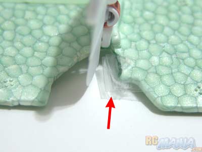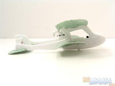 I will use a sharp hobby knife to carefully cut away a small bit of the horizontal stabilizer so the rudder can move further to the left. Kids, do not do this without your parents' supervision! Any knife sharp enough to do this job correctly can be very dangerous!