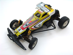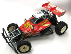 Well, "The Cat" was eventually discontinued and replaced by better vehicles, but Traxxas designers later thought to put street tires on it and sell it as an on-road vehicle with a truck body. Yes!! That's right! The Spirit is actually "The Cat" from 1987, reincarnated!! But wait! It gets more interesting! The design of this chassis was actually a copy of another buggy that was being sold at the time, called the "Rhino" (and later re-released as the Thunder Bolt and Lobo II), made by toy RC manufacturer Nikko! Yes, that Nikko! The "hobby-level" Traxxas Spirit we have tested here, in 2006, is a copy-cat of a toy-class Nikko from twenty years ago! HA!